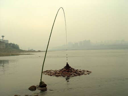 江边崖壁上有很多石龛,以前周围的居民用来存放死者的骨灰盒,希望死者能够永远的怀望这条曾流经他们生命的河。在石壁下面的这件作品,诉说的就是生与死。